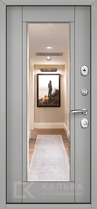 Фото «Стальная дверь с зеркалом серый и МДФ ясень для квартиры №44»