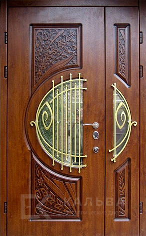 Фото «Металлическая двустворчатая дверь с МДФ и круглым остеклением №115»