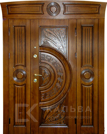 Фото «Стальная дверь-портал орех с радиусным декором для частного дома №97»
